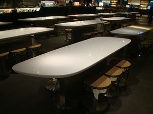 夏虞家具-京站百貨美食街不銹鋼實木凳子及人造石商空大桌訂製工程作品