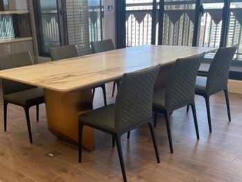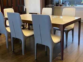 夏虞家具-住宅進口牛皮高背餐椅訂製工程作品/胡桃實木陶板桌訂製