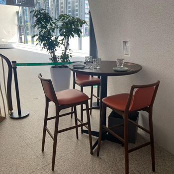 夏虞家具-替家具公司訂制的連鎖餐廳中鳥實木牛皮吧椅訂製工程作品