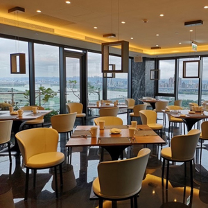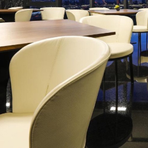 夏虞家具替家具公司訂製的飯店餐廳牛皮金屬旋轉餐椅/Taiwan favrile furniture