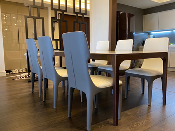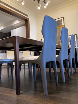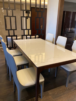 夏虞家具-住宅進口牛皮高背餐椅訂製工程作品/胡桃實木陶板桌訂製