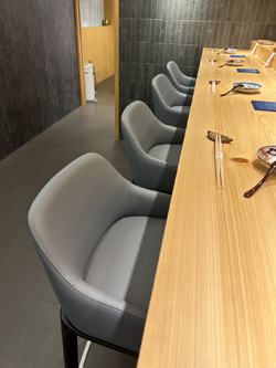 夏虞家具替家具公司訂製米其林餐廳頂級日本料理餐廳牛皮實木吧椅訂製工程作品