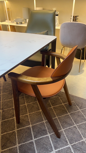 夏虞家具-飯店旅館胡桃木Napa牛皮餐椅訂製推薦